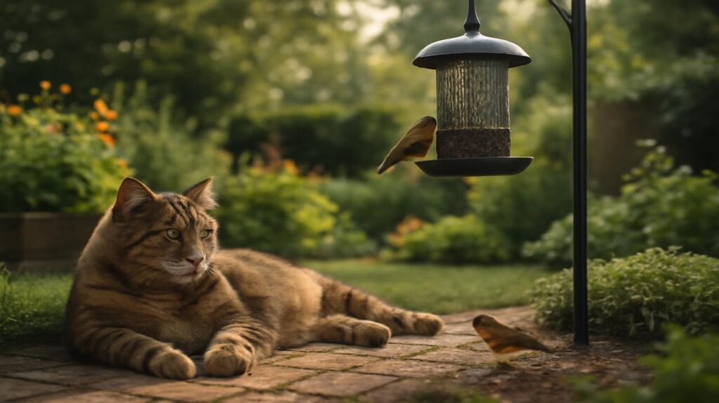 Ein entscheidender Trick: Distanz schaffen zwischen den Lieblingsplätzen der Vögel und den Lieblingsrouten Ihrer Katze. Vogelhäuschen, Nistkästen und Futterstellen sollten so platziert werden, dass keine Katze im Umkreis von zwei bis drei Metern lauern kann. Keine niedrigen Äste als Sprungbrett, keine gut versteckten Büsche im direkten Anflugbereich.