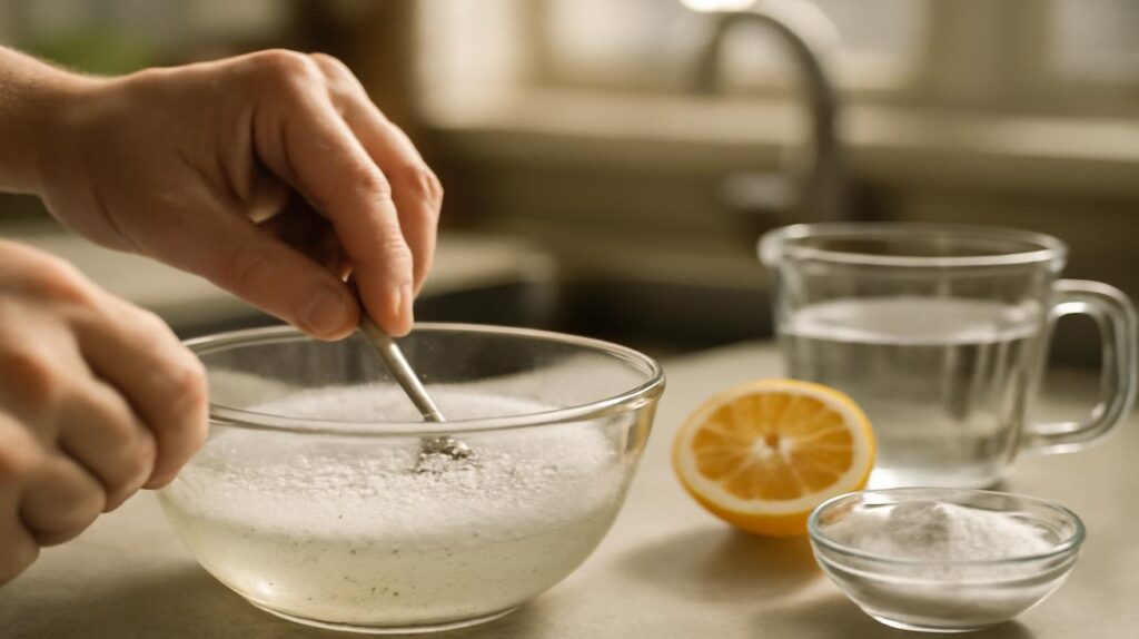 - Natron einrühren: Gib das Natron dazu und rühre gründlich. Es kann ein bisschen aufschäumen – das ist normal.
