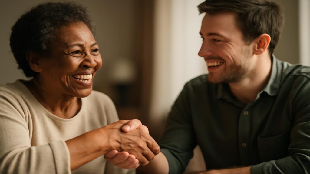 In der zweiten Szene erzählst du dieselbe Geschichte. Dein Gegenüber schaut dich an, die Stirn legt sich leicht in Falten, er lässt dich ausreden. Dann fragt er: „Und was hat das mit dir gemacht, als du es gemerkt hast?“ Du spürst: Hier ist noch Raum. Hier geht es gerade um dich, nicht darum, wer den besseren Vergleich parat hat.