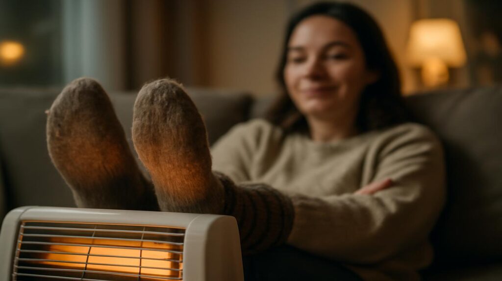 Noch ein oft unterschätzter Faktor: Zugluft. Wenn es im Raum nur 21 Grad hat, aber ständig ein kühler Luftstrom über den Boden kriecht, spüren deine Füße das zuerst. Ein Zugluftstopper an der Tür, abgedichtete Fenster, ein etwas umgestelltes Sofa – manchmal genügt es, die „Windstraße“ im Raum zu unterbrechen, und deine Füße atmen auf.